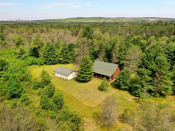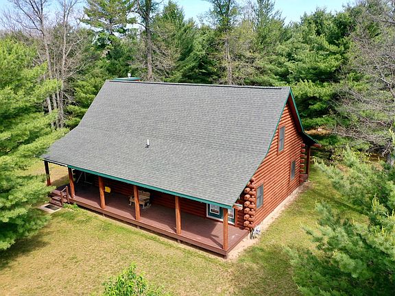 Beautiful log home built in 2000 on 47 acres featuring 3 bedrooms, 2 bath, large loft, open concept living room and kitchen, full basement, 3 car detached garage, additional garage, and a guest cabin.