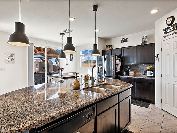 Rare Gem Alert! Discover the of luxury living in this immaculate single-story residence boasting an inground pool, breathtaking views, and a coveted corner lot. Step inside to find a meticulously maintained 2134 sqft home featuring 3 bedrooms and 2.5 baths. Entertain effortlessly in the expansive great room and living area, adorned with elegant furnishings that are included to elevate your lifestyle. The kitchen, showcases granite countertops, a breakfast bar, recessed lighting, an island and a pantry. Each room is adorned with ceiling fans and LED lights set into recessed fixtures for ambiance at every turn. Privacy abounds in the fully fenced backyard oasis complete with a cabana housing a built-in BBQ an additional shower and convenient shed for all your storage needs. The practicalities have not been overlooked. Finished 2-car garage equipped with an epoxy floor finish and electric car charger while relishing the separate one-car garage. **Turnkey! Furniture plus..included. **
