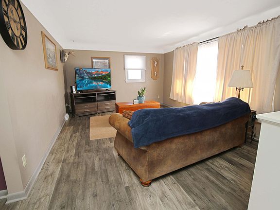 This well-kept rambler offers comfort, updates, and space in the sought-after ROCORI School District. Featuring three same-floor bedrooms and two bathrooms (¾ and ½ on the main level plus a bonus shower in the lower level), this home has seen many improvements. The kitchen was fully remodeled within the last five years with custom Schlangen cabinets, 42” uppers, new stainless steel appliances, and updated countertops, along with sink and light fixtures. The living room showcases coved ceilings and newer flooring and fresh paint throughout the main level. Downstairs includes a spacious family room with an electric fireplace and faux chimney, a cedar-lined closet, and the potential for a large family room (just needs flooring), and more bedrooms. Maintenance-free windows, soffit, fascia, steel siding, and brand new front steps add to the home's long-term value. Enjoy time outdoors in the fenced yard, complete with an in-ground electric pet fence, large patio off the deck, granite landscaping, and a 10’x16’ storage shed with 8’ walls. With additional parking beside the garage, beautiful maple trees, and no neighbors behind, this home blends privacy, updates, and functionality.