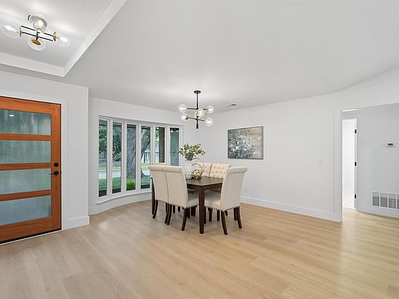 Inside, every detail has been refreshed: all-new flooring throughout, a remodeled kitchen with quartz countertops, brand-new appliances, and custom cabinetry, plus updated bathrooms and designer finishes. With two living areas and multiple dining spaces, the layout is ideal for both family life and entertaining.