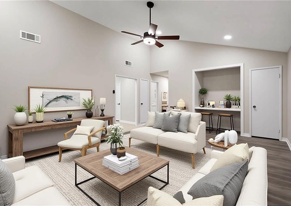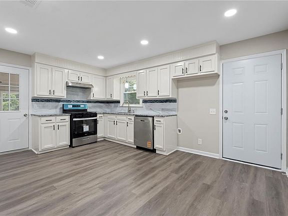 Every detail beautifully crafted in this brand new renovation! White spotted granite counters. Marble like tile backsplash with blue accents in kitchen . Enough space to add an island or a 4 to 6 person breakfast table. Upon side entrance you have a large room, potential uses are bedroom, home office, or play room OR add a ping pong table, drink area and anchor your Smart TV to make it a game room. The living room features a small nook, ideal for laptop space, wine/bar set up or book case; OR bring your electric fireplace to make the space even cozier. Less than 28 miles to downtown Atlanta attractions, like Atlanta Zoo, Aquarium and Hartsfield International Airport. Virtual Staging photos may include appliances/light fixtures and furniture not included with home.*
