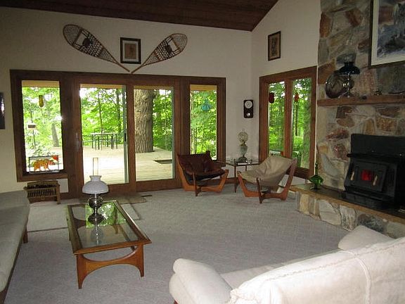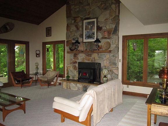 CONTEMPORARY HOME-MINI FARM WITH SECLUDED WOODED LOCATION. HOME IS UPDATED W/NEUTRAL COLORS. LIVING ROOM HAS VAULTED CEILINGS & FULL WALL STONE FP OVERLOOKING HUGE DECK. FORMAL DINING W/PARQUET FLOORS PLUS DINETTE. MASTER SUITE HAS A CIRCULAR STAIR CASE TO LOFT-STUDIO/SEWING RM OR STORAGE. UPPER BATH W/DOUBLE SINKS, WHIRLPOOL TUB AND SKYLIGHT PLUS A FULL SIZE SAUNA. 2BRS ON MAIL LEVEL WITH ONE BR THAT COULD BE DEN/OFFICE. APPLIANCES INCLUDED PLUS CENTRAL VAC. 40x60 BARN IDEAL FOR ANIMALS OR STORAGE OR SHOP.