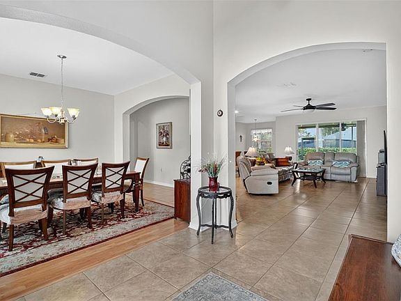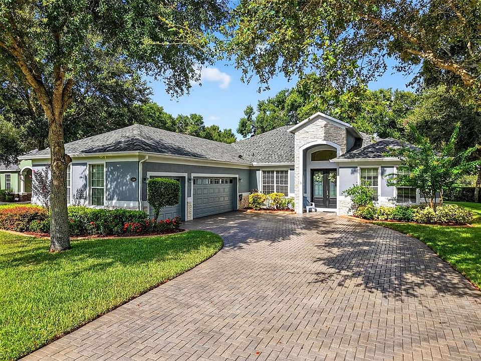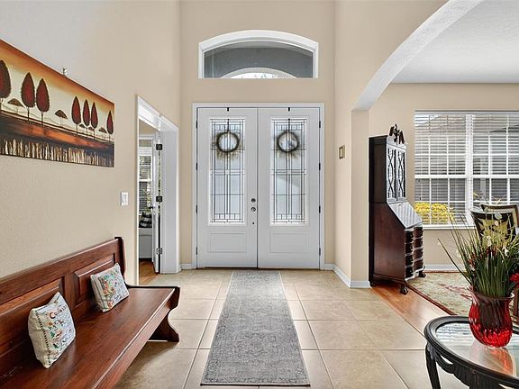 Sprawling, ideal floorplan, single story with split bedroom configuration; 4-bedroom 3 bath M/I home Berkley II model. Fresh exterior paint, custom pavers, corner fenced lot with an oversized 3 car garage with opener leads to interior utility room with washer, dryer and more storage. Double designer exterior doors bring you to the tiled foyer with a private office with French doors. A large formal dining room is convenient to the spacious kitchen and huge family room making it ideal for entertaining. The kitchen has granite surfaces, an electrical outlet for every counter appliance possible, stainless-steel appliances, large island with seating and so much pantry storage that covers an entire wall in the breakfast nook. Open, bright and inviting family room opens to the large, newly expanded screened porch that is like another room. The porch has a serene, private view of the fenced rear yard. Large secondary bedrooms are nestled on the other side of the home providing privacy and storage in their closets. Primary PRIVATE suite offers two large closets, sitting area with sliding glass doors, spa-inspired, large bathroom with garden tub and separate shower, dual vanities. Many upgrades include: expanded screened porch, interior paint, landscaping, new roof 8/2024, electrical panel, and wired for a generator, new AC 1/27/23, and hot water heater 11/08/22. Just bring your lifestyle, people, pets, and dreams to this wonderful community and home.