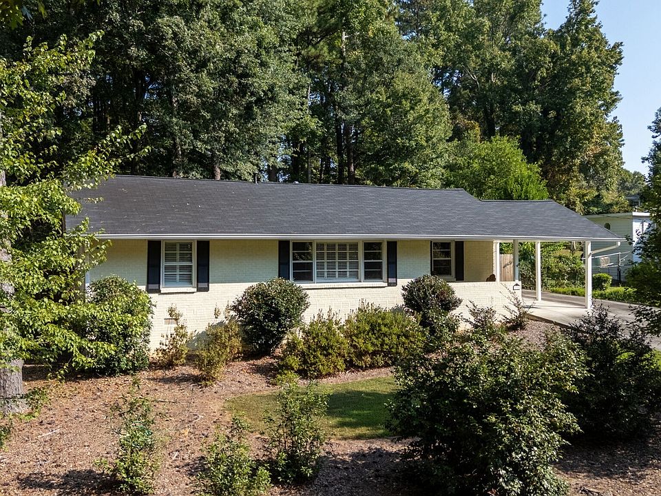 Nestled conveniently across the street from the sprawling greens of Brook Run Park, this enchanting brick ranch in Dunwoody invites you to experience a delightful blend of comfort and convenient living. This charming home welcomes you with a warm embrace of sunlight streaming through a magnificent wall of windows in the living room, creating an airy ambiance. The windows are adored with privacy shutters allowing you to open and close them from inside the home. The living room flows effortlessly into the dining room, adorned with a charming gold chandelier and ceiling medallion. Ideally situated within the home the well-appointed kitchen has a charming feel, featuring white custom cabinets, slate flooring and a window above the sink overlooking the yard. This lovely home features an owner's suite with a sitting room, great closets and private bath. Additionally, there are two spacious secondary bedrooms with great closets and a full guest bath. The laundry and mudroom are thoughtfully designed to allow you ample storage and ease of living. The tranquil views of the backyard provide a serene sense while enjoying the back patio. The expansive fenced yard space is perfect for gatherings or unwinding after a long day. Additionally you will find a carport and a sleek slate parking pad. Truly making this residence shine is its prime location; you'll enjoy easy access to the picturesque Dunwoody Trailway, not only are you across from Brook Run Park and near top-rated schools, shops, and Brook Run Golf Course-you're also at the center at the heart of one of Metro Atlanta's most ambitious trail expansions. The Dunwoody Trailway is poised to tie in with the PATH400 corridor, which will link to the Atlanta BeltLine - and eventually, the Silver Comet Trail - offering unmatched potential for exploring across the region and a variety of recreational options just minutes away.