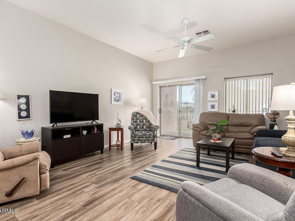 Beautiful Townhome in Apache Junction! Very Spacious with 2 bedrooms and 2 baths. Kitchen remodeled in 2022 with professionally painted white cabinets, new quartz counters and backsplash. All appliances included! Updated tile plank flooring throughout. New roof in 2022 and newer AC unit with very low SRP bill at an average of only $71.00 per month! Units in this complex don't come on the market very often! Come see it before it's gone!
