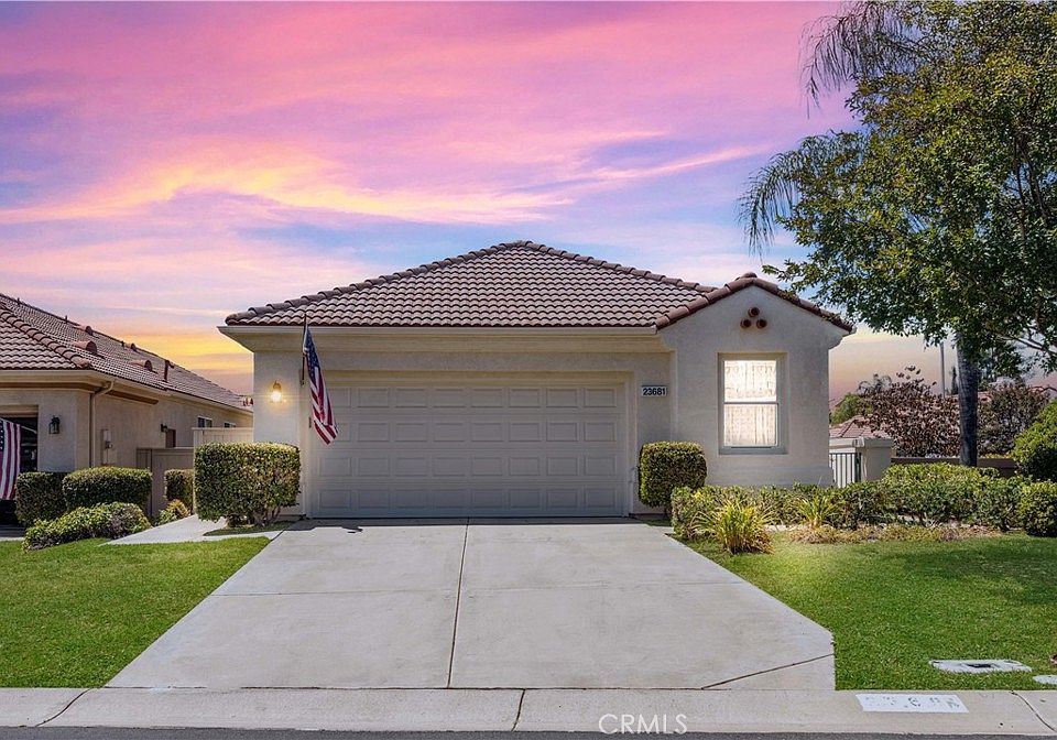 Welcome to 23681 Corte Sabio, a beautifully maintained home nestled on a generous 6,972 sq ft corner lot in the heart of The Colony — one of Murrieta’s most desirable 55+ guard-gated communities. Walk in through a double-door entry and you are greeted by high ceilings and tons of natural lighting. At the entry, a cozy den offers the perfect space to unwind, read, or entertain guests. To the left, a short hallway leads to the indoor laundry room and convenient access to the two-car garage. This wing of the home also features a full guest bathroom and a spacious bedroom—ideal for visiting family or as a flexible office or craft room. The remodeled kitchen features updated white shaker cabinets, sleek quartz countertops, and abundant pantry space. The open-concept layout offers a seamless flow into a dining area and sizable living room. The primary suite is tucked privately toward the back of the home and features direct access to the backyard along and also features an upgraded en-suite bathroom with dual sinks, complete with a walk-in jetted safety tub. Outside, the backyard strikes a wonderful balance between low-maintenance comfort and outdoor enjoyment, with a pergola-covered patio space and a great grass area. Located in The Colony, you will have access to a vibrant, amenity-rich lifestyle. Residents enjoy a resort-style clubhouse with a fitness center, pool, spa, lighted tennis and pickleball courts, library, billiards room, hair salon, and offers 24/7 guard-gated security. There’s also an 18-hole golf course that winds through the community, along with a wide range of social clubs and activities that make it easy to connect with neighbors.