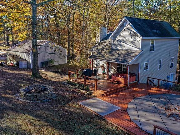 ***Public Real Estate Only Auction to be held Friday, April 25 at 11am.*** Warm, inviting 3 BR, 2 BA, two-story home on 1.24 acres near Beaver Lake. Enjoy peaceful lake access via easement trail leading to the shoreline. Home includes finished, carpeted partial basement with utility room & walk-out, plus large 2-car metal shop building. Relax outdoors with an above-ground pool, deck & hot tub. Additional storage options include two carports, a separate outdoor shed. A portion of property extends across the road out front, with convenient circle drive for easy access. Walking distance to War Eagle Marina & War Eagle Public Area & campground. A perfect retreat with both privacy & lake proximity!