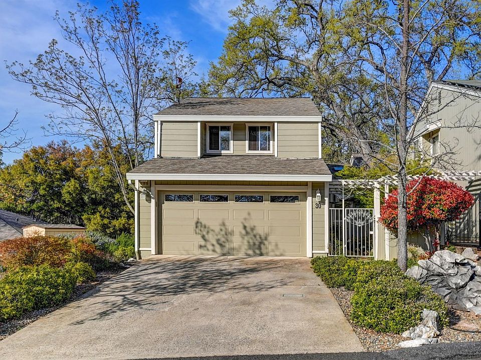 Pass through the charming, private courtyard past the wispy Japanese Maples and enter into the living/dining room with windows galore, overlooking the pool. Access the large deck from the living room and primary bedroom where you can watch the deer and turkeys stroll on by as you sip coffee in the morning or a glass of wine in the afternoon. A large walk-in closet and bath with walk-in shower stall complete the primary, ground floor suite. The updated kitchen has gorgeous, granite counters, upgraded cabinets and floors and newer stainless steel appliances. A pass through comes in handy when entertaining guests. Upstairs there are two bedrooms, a full bath with a tub and a bonus room to be used however you like...office, den, media room, so many choices, the space is open to the stairwell for a lofty feel. Conveniently located just minutes away from Sonora and Murphys, you will fall in love with the peaceful grounds and beauty of this lovely development. Enjoy the solar-heated pool, tennis court, party room, and pickle ball court in this wonderful community.