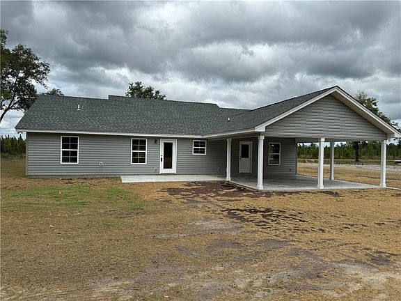 New Construction, Approximate completion date, early to late July, 3 Bedrooms, with One plus Acre on County paved road, Excellent land, high and well drained, beautiful trees, Open floor plan with cathedral ceiling in great room, split bedrooms , architectural shingles, spray foam in attic, double pane windows, vinyl siding, luxury vinyl tile flooring, white maple cabinets, kitchen has island with eating bar, covered front porch and back patio, 22 X 22 carport, Main BR has large shower with seat, double vanity. This property is on a new well and septic, No HOA, and high speed internet(fiber) available. Also Includes one year Builders Warranty.