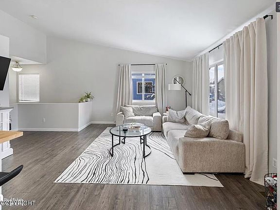 FULLY FENCED BACKYARD! PET FRIENDLY! If you're in the market for a well maintained townhouse, this home has been updated throughout and boasts an open layout that is perfect for entertaining. You'll love the stunning kitchen with modern appliances, stylish cabinets, new kitchen island with a butcher block counter top & it flows seamlessly into the living room, creating the ideal gathering space for family and friends.Upstairs, you'll find the spacious master bedroom with plenty of natural light that connects to the bathroom. The master suite also features a large walk-in closet, providing ample storage space. The two twin bedrooms are located downstairs and share a Jack and Jill bathroom. These bedrooms are perfect for children or guests, providing a comfortable and private space to relax. Outside, the fully fenced yard is the perfect place to enjoy those long summer nights. The yard is on the larger side for the neighborhood. This townhouse is conveniently located close to shopping, dining, and JBER.