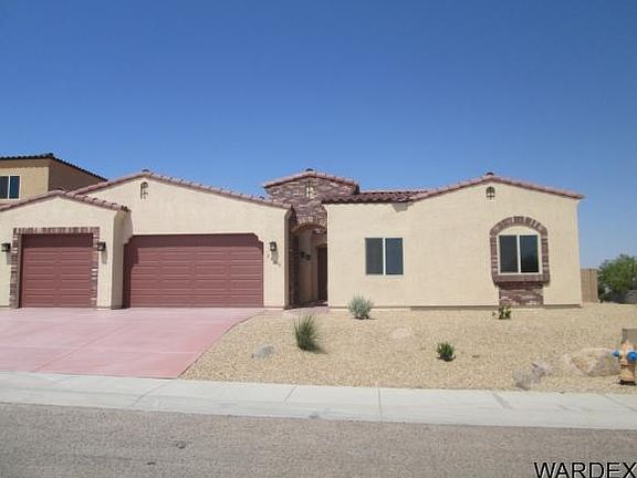 Beautiful new custom home with 4 car garage, brick exterior accents, tile roof, colored block wall fencing, colored cement driveway, full front yard landscaping and rear rock landscaping, covered patio, upgraded windows and sliders, 10 ft. coffered ceilings, two tone paint, electric fireplace. Gourmet kitchen with upgraded appliances and cabinets, tile back splash. Quartz countertops in kitchen and baths Master bath has dual sinks, tile walk-in shower, free standing tub, guest bath tile shower, additional powder room off main living space. Wood look tile throughout except bedrooms. Corner lot with mountain view, 2x6 construction, 2 year builder warranty.