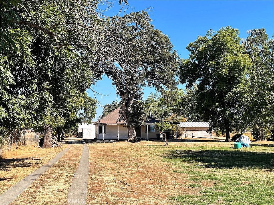 It's all about the Quiet. This 3.39 acre fenced and irrigated parcel is just west of the City of Tehama and the most striking feature is the Quiet. You'll feel it the minute you get out of your car. Big trees and a long driveway with concrete strips lead you back to this solid vintage home built in 1928. The owner started to remodel but there's still work left to do. The roof is 6 years young; the electrical system and panel have been upgraded; a new well was drilled about 15 years ago; windows were replaced; the HVAC system is newer; part of the exterior has been resided with cement board; and the living room has been refinished. The detached garage has a work bench and shop area along with storage room in the rafters. The laundry area is in it's own building. The plumbing and electrical are ready to go but the building needs some repair. There's a concrete RV pad and an old dairy barn that sit at the back of the property. The barn definitely needs work, but part of the structure is solid. The property has El Camino water shares and a cross fenced side pasture that's irrigated and used by the neighbor's cows. Fencing and gates are in good condition and there are lots of outdoor water spigots for watering. Concrete steps lead down to a handy root or wine cellar. The property needs some attention, but it's well worth the effort. There's even a beautiful view of Mt. Lassen.
