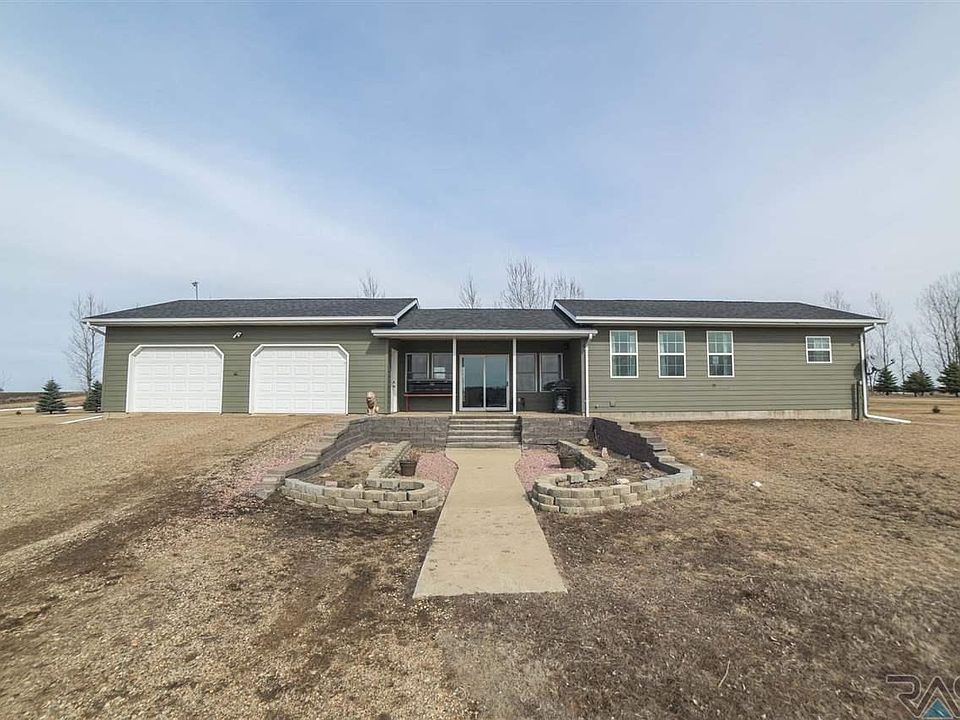 Hard to find Acreage off a blacktop road just a few miles away from Madison and near Lake Madison. Three bedroom two bath modern style ranch home with large oversize double attached garage all on approximately 3.5 acres. Lots of great updates here with new siding, roof, some windows, A/C and furnace. Newly finished basement which could be used as an awesome master suit or large third living space. Lower level half bath is plumbed for a full. Nice shelter belt and great view. There is an 18x30 detached garage with electric and a wood burning stove for heat. What a great place to call home!