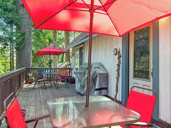 Welcome to your mountain retreat! This charming home features a spacious front deck perfect for al fresco dining, lounging, and BBQs—seamlessly accessed from the inviting living room. The open-concept layout connects the living room and kitchen, creating an ideal space for entertaining. Enjoy the cozy ambiance of a wood-burning fireplace with a beautiful stone surround and wood mantle. The updated kitchen boasts granite countertops, stainless steel appliances, and plenty of space for preparing meals. On the main floor, you'll find two bedrooms and a full bathroom, while the upper level offers two additional bedrooms and a second bathroom with a relaxing soaking tub. A versatile workshop with a mudroom and laundry area adds convenience and functionality. Located near Lake Gregory, Goodwin & Sons Market, shops, and restaurants, this home offers both comfort and a fantastic location. Whether you're looking for a full-time residence or a weekend getaway, this one has it all!