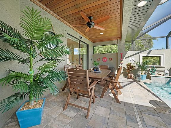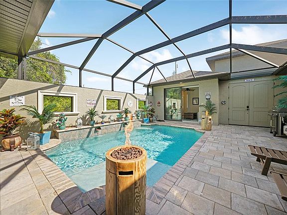 Courtyard home sold furnished! This highly sought-after plan offers 3 bedrooms and 3 1/2 bathrooms and shows like new! Brand new hardly used furniture inside and out. Brand new paved driveway and easy to maintain zero scaped yard. Enter through the welcoming double doors into a tropical courtyard setting, complete with your private pool! The pool has a shallow water sun shelf and a waterfall wall. This home includes a separate In-law suite for the privacy of family and friends or use it as your private office. Your guest will feel as if they have just stepped into a private resort as they listen to the quite babble of the waterfall from their room with 2 propane tiki torches by the pool. Pass through the courtyard into the well-designed main home. Spacious open floor plan with the kitchen, dining and great rooms all with views of the pool and patio. The large 4 panel sliding doors from the living space help to transition your indoor space with your outdoor, pool and entertainment area for a true sense of being one with the outdoors. The master bedroom and separate In-law suite also offer sliding glass doors with custom window treatments leading out to the courtyard/pool. Upgrades include crown molding, tile throughout and tray ceilings. Many new homes in the community! Close to shopping, restaurants and just a short drive to area beaches including Boca Grande!! The appliances are included and already installed as are fans. FHA & VA loans are acceptable
