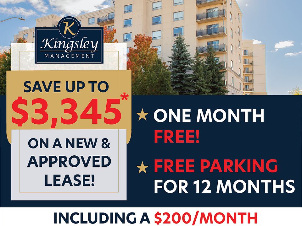*Conditions apply. Available while supplies last. Offer valid on select units for new and approved leases only. Parking options are based on availability.