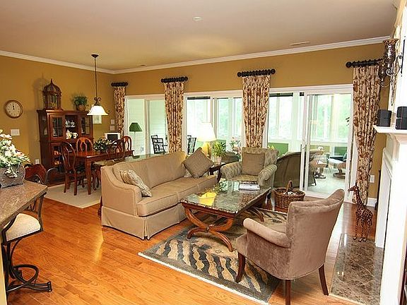 PRICED to SELL! SIMPLY STUNNING! GORGEOUS over 5200 sq ft RANCH home w/full daylight BASEMENT. 4BED & 4.5BA. Family rm w/gas FP, Formal Living/office, Gourmet Kitchen DBL. Oven, Cherry Cabinets, Cooktop, SS Appliance & Island. Dining room w/ Tray Ceiling & Wainscoting. Heavy Molding & Blinds thruout. HRDWD main living area. Finished walk-out 5-room BASEMENT has it all- Drybar, Game, Craft & Media room+4th bed suite. Storage! Custom finished Sun Room, Deck & Patio overlook Army Corp Engineer Forest.