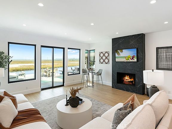 • A spacious living area seamlessly flows out to an expansive patio overlooking the tranquil canal. Imagine savoring your morning coffee or winding down with an evening drink as you take in the serene water views.