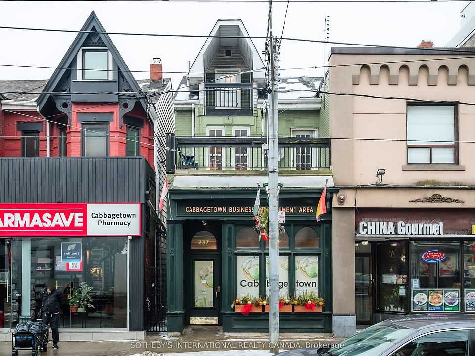 Discover the endless possibilities this charming and versatile commercial-residential property has to offer! Ideally positioned in the heart of Cabbagetown right at the intersection of Carlton and Parliament, this unique building provides flexible living and work options. The main floor back office can easily serve as a second bedroom, while a long-term commercial tenant (Cabbagetown BIA) ensures steady income. Alternatively, expand the commercial footprint to the rear of the main floor to maximize store front potential. Enjoy abundant natural light from a fantastic second-floor sundeck and a third-floor walkout. Spacious principal rooms offer character and functionality, while the fully fenced courtyard-style outdoor space is ready to be reimagined. Plus, with two-car parking right at your back door, ideal for a multi unit property. Don't miss this rare opportunity to make it your own! Situated in the heart of the Cabbagetown Heritage Conservation District, this property falls under Part V of the Ontario Heritage Act. With a commercial space comprising 21% of the total square footage, buyers may have the opportunity to explore residential financing options.