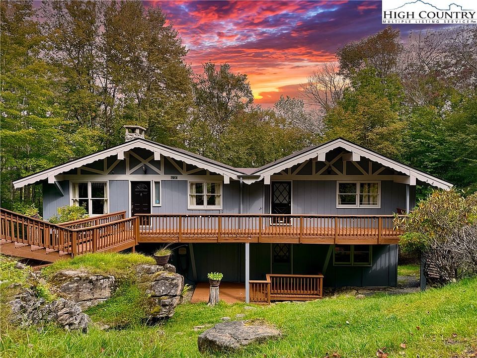 Welcome to the enchanting "Blue Beary Haus," a truly unique 4 BEDROOM - 3 BATH mountain retreat nestled in the serene embrace of Beech Mountain. This exceptional property has been well maintained & the owners have kept with the original charm of this home, something that Beech Mountain is famous for! Step inside to discover the main level where elegant hardwood flooring flows throughout leading you to a cozy family room with a stone wood-burning fireplace perfect for gathering on cool fall evenings. The open floor plan effortlessly connects the family room to the kitchen and dining area creating an ideal setting for entertaining. From here, step out onto the rear deck where you can unwind to the soothing sounds of streams below & just be immersed in nature's tranquility. On this level, you’ll also find the generously sized primary bedroom suite with a separate entrance to the rear deck. Venture down to the lower level where you’ll find 3 additional bedrooms and 2 full baths providing comfortable accommodations for family and friends who come to share in the beauty of the mountains. Recent updates contribute to the property’s appeal, including a freshly painted exterior and a brand-new roof, ensuring the home’s lasting durability while maintaining its vintage allure. This property is also Beech Mountain club eligible allowing access to all the exclusive member-only amenities such as a prestigious 18 hole golf course, tennis/pickleball courts, a heated outdoor pool, fitness center & fine dining! Conveniently situated just minutes from the amenities of the Town of Beech Mountain, as well as Beech Mountain Ski Resort and countless other outdoor adventures, "Blue Beary Haus" beautifully intertwines timeless charm with modern comforts making it the ultimate escape to the mountains. Being sold TURN KEY and fully furnished, this delightful home is truly move-in ready allowing you to immediately immerse yourself in the stunning fall foliage and the enchanting winter season that awaits.