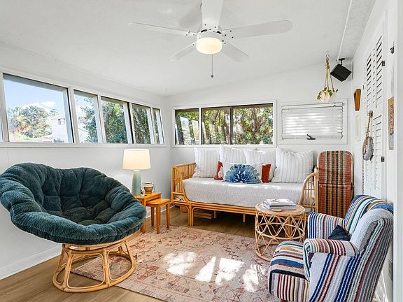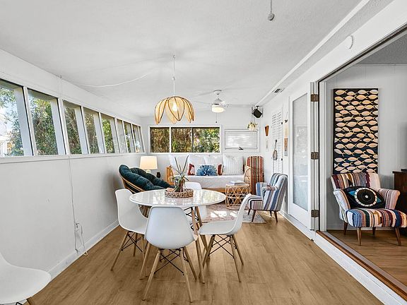 Tucked in the heart of Laguna Beach, this darling cottage embodies the quintessential beach lifestyle, just 1.5 blocks from the sugar-white sands and emerald waters of the gulf. Set on a generous 50x110 lot, this charming two-bedroom, two-bathroom retreat offers a perfect blend of vintage boho vibes and modern updates, making it an ideal second home or vacation rental.The home's inviting interior features fresh paint, updated flooring throughout and a newly renovated bathroom. A brand-new roof ensures peace of mind, and the property is being sold fully furnished, ready for you to start living the beach dream. Outside, a spacious backyard with a fire pit and seating area is perfect for evening gatherings under the stars. Laguna Beach's coveted location is a treasure trove for beach lovers, offering convenient access to the renowned Carousel Grocery Store, complete with a wine cellar and gift shop, and the iconic Thomas' Donut and Snack Shack. Enjoy easy golf cart or bike rides to the beach, or take a short drive to explore the vibrant dining and shopping options at Pier Park or along 30A. Free from HOA restrictions, this property provides the flexibility to embrace your personal vision of coastal living. Whether you're seeking a serene getaway or a savvy investment, this Laguna Beach gem offers an unparalleled opportunity to enjoy life at the beach.