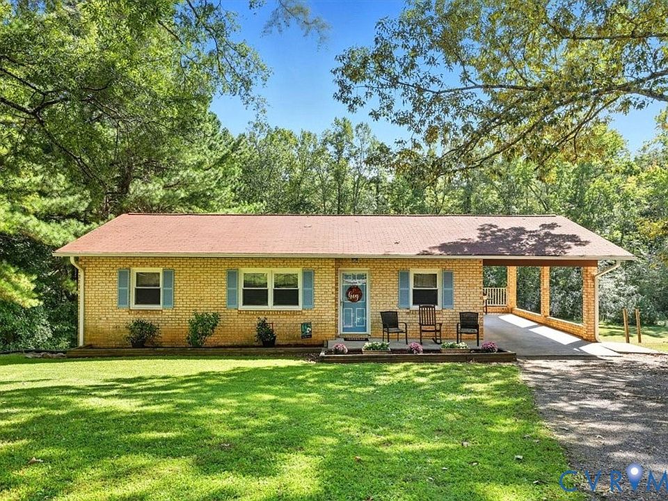 PRICE REDUCED! Charming country living! This brick rancher offfers a main floor with a cozy living room with carpet, an eat-in kitchen with dining area, dishwasher, stove and refrigerator all convey! There are 3 bedrooms, all with carpet and ceiling fans, a full hallway bath, and updated central electric heat and air. Head down to the basement for another 1,077 square feet of potential! The basement area is roughed in, water proofed in 2025, has a full bathroom - great for storage OR finish this area and have a total of 2,155 living space - it has interior and exterior access both, several rooms that could be finished and made into bedrooms, office, game rooms, so many options! Basement is climate controlled, has a new sump pump, and vapor barrier - so much potential there. The property includes an in-ground swimming pool, a rear patio, a 1-car carport, lovely landscaping, and is sitting on half an acre in Boydton, minutes from Buggs Island Lake! Rural small-town vibes but convenient to surrounding schools, cities, and entertainment - check it out!