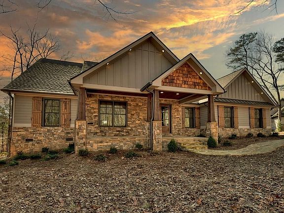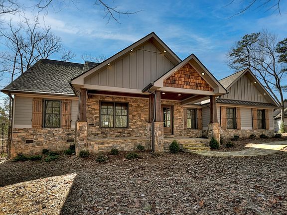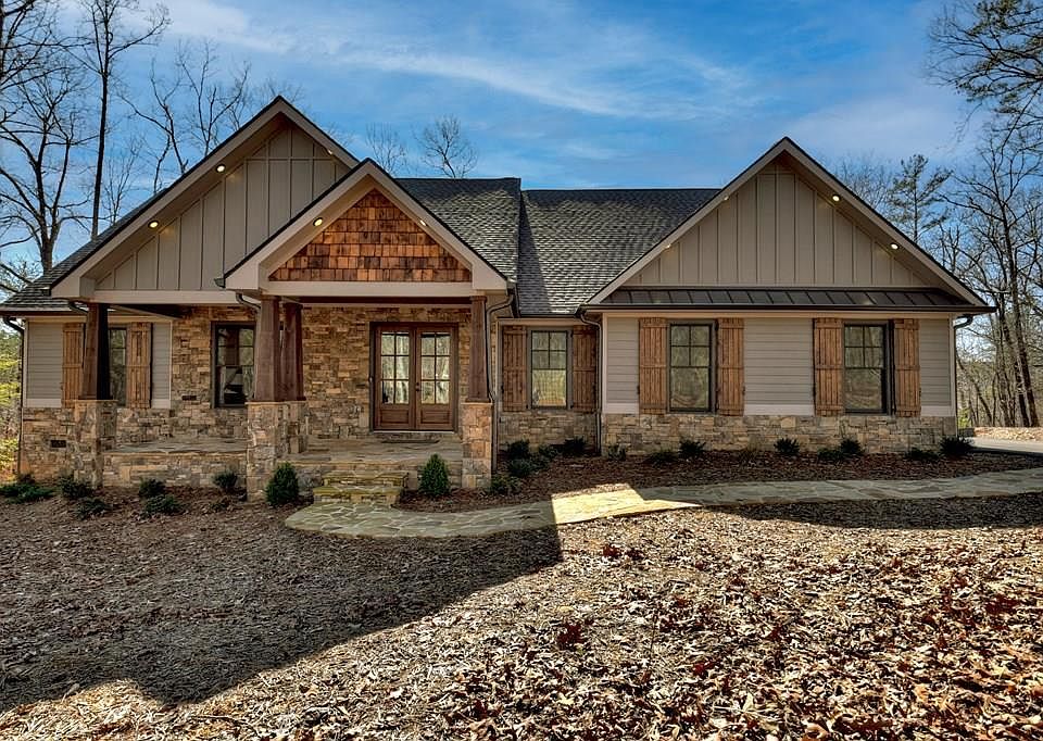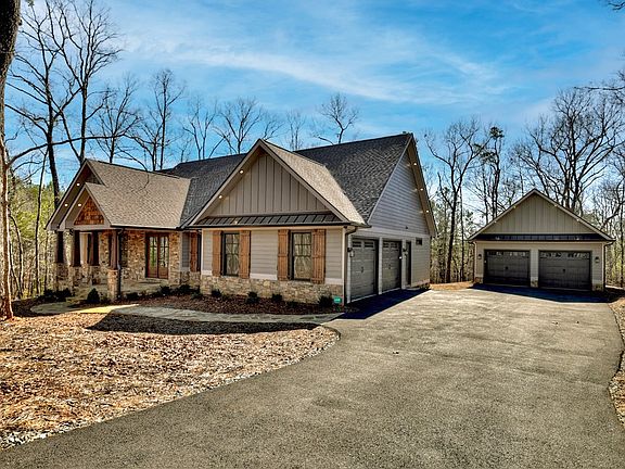 This exceptional offer presents a fantastic opportunity for a custom-built 2022 ranch-style home, showcasing excellence with its three bedrooms and two baths. Situated in a tranquil setting, it's conveniently located just shy of a mile from Carter's Lake. Every aspect of this residence has been meticulously attended to, offering an unparalleled mountain living experience. The exterior showcases low-maintenance hard-plank siding, inviting rock porches, and a naturally landscaped. Step inside to discover a spacious, open floor plan adorned w/ luxury vinyl flooring, soaring vaulted tongue & groove ceilings, and a striking rock fireplace. The expansive dining area seamlessly merges w/ the kitchen featuring custom wood cabinets, granite countertops, brushed bronze hardware, a sizable island, & a butler's pantry boasting ample cabinet space & an additional island w/ a sink. Conveniently positioned near the master suite is a laundry room complete with a custom tile dog shower. The oversized master retreat features vaulted ceilings and abundant lighting. The master shower area includes a double vanity, granite counters, a spacious tile shower, and a freestanding soaking tub. A vast walk-in closet adds to the allure. On the opposite side of the home, two generously-sized bedrooms share a full bath located in the hallway. Throughout the home, doors stand at an impressive 8 feet tall, complementing the lofty 9-foot ceilings. Parking is plentiful with a two-car garage situated off the kitchen area, equipped with a car charging station. Additionally, a large detached garage, custom-built at 26 x 24, offers storage for a boat and includes a finished bonus room upstairs with its own electric wall unit for heating. Nestled within the prestigious Tranquility subdivision, this home enjoys proximity to the Carter's Lake boat ramp, pavilion, and campground area, all within a swift 2-minute drive. Experience the pinnacle of mountain living, just 10 miles from downtown Ellijay."