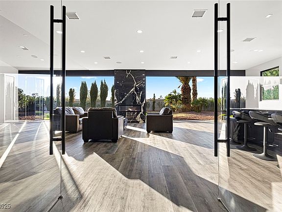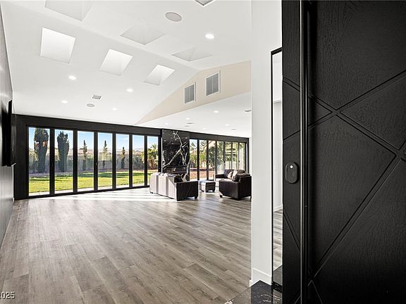 Discover a rare modern masterpiece—an architectural single-story on a private half-acre cul-de-sac lot, transformed with exceptional craftsmanship. Dramatic eighteen-foot multi-panel bi-fold doors and seven skylights bring in natural light and create seamless indoor/outdoor living. The designer kitchen features custom cabinetry, book matched Brazilian granite, premium GE Profile appliances, custom built JenAir refrigerator and coffee machine and an oversized island. Enjoy a custom glass-enclosed wine bar, multi-zone smart audio system, new HVAC, plumbing, electrical, Milgard windows, eight-foot interior doors, Italian laminate flooring and programmable LED lighting throughout. The primary suite offers a resort-style spa bath with step-lighting, expansive glass shower, smart toilet, built-in wine cooler and a custom-designed closet. RV parking, modern iron gates, upgraded landscaping and pre-designed pool/spa plans complete this exceptional, fully permitted transformation.