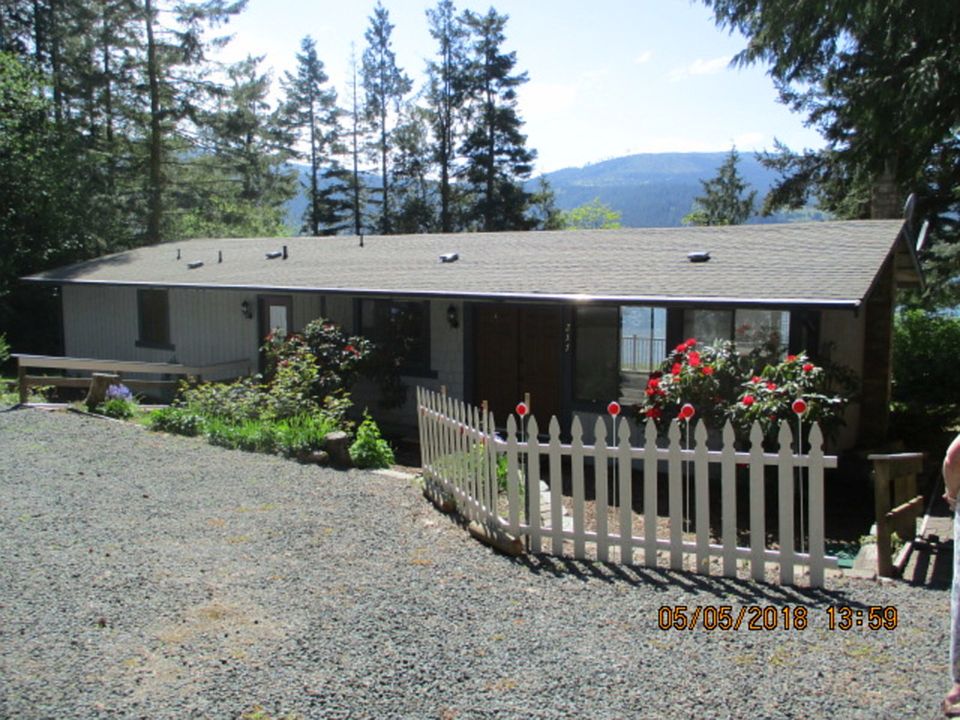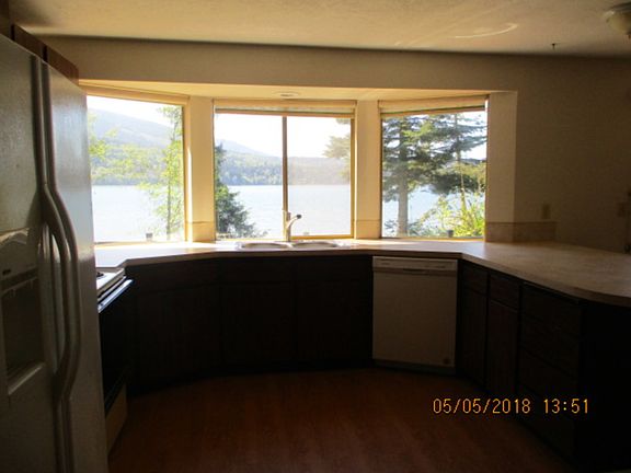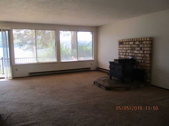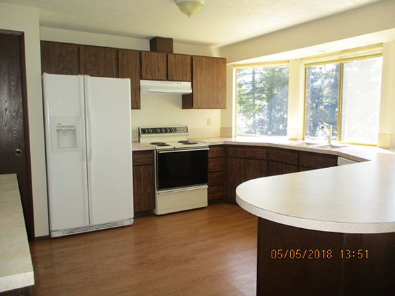 Low blufftop pet-friendly 1979 rambler. Carpet is older, but new within the last year: roof, kitchen countertops, kitchen sink/faucet, porch lights, deck railings, thermostats, entry/hall/master bd closet light fixtures, stove exhaust, garage door. Large deck to enjoy the water view. Sunny kitchen w/ bay window. Master bedroom has a walk-in closet, and glass slider onto deck. Separate util rm with w/d hkups. Tenants pay all utilities (on well/septic), Detached 720 sq ft garage (parlor stove non-functional), new tenants must assume lease to 6-19-19, with possibility of extending beyond. Owner will be on property approx. 3 times/yr to conduct shoreline management.