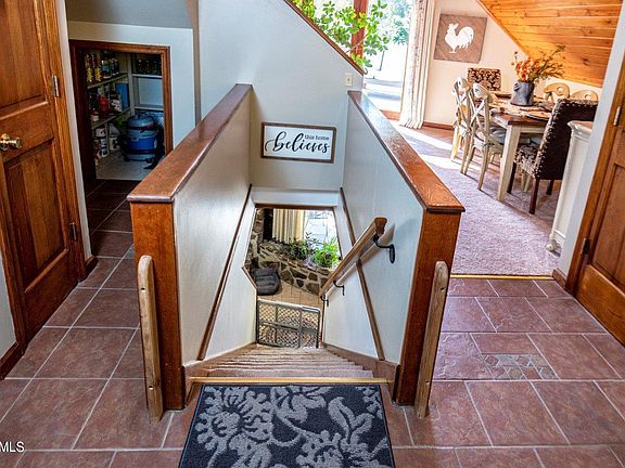 This home has 3 bedrooms and 2 full baths with 2 living spaces. (connected) The first floor is like an apartment with everything you need for your guests, teenager, MIL suite, or rental. On the 2nd level is the main kitchen with beautiful wood cabinets, new stainless steel appliances, breakfast bar, solid surface counters, and 2 pantries. Laundry room right off the kitchen with a pull down ironing board and built in freezer. Family room and dining room with beautiful planked wood ceilings and a gorgeous 2 story stone fireplace. On the 3rd level are 2 more bedrooms with a gambrel style roof and a large bathroom.