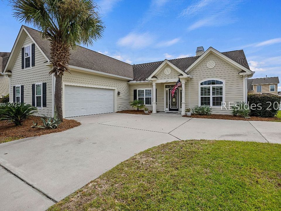Discover effortless Lowcountry living in this beautifully maintained Eastgate floor plan featuring 3 bedrooms, 2.5 baths, and exceptional bedroom separation. A flexible study/bonus room with French doors and a formal dining space provide work-from-home or entertaining options, while the spacious 2-car garage and walk-up attic deliver valuable storage.The open-concept layout centers around a 42" gas fireplace with custom built-ins and a gourmet kitchen showcasing a gas range, double island, stainless steel appliances, granite countertops, pantry, and stylish wainscoting. Step from large screened porch directly outside to a large fenced backyard with a pergola perfect for grilling, relaxing, and year-round entertaining.Located in the sought-after Lawton Station community in Bluffton close to Hilton Head & Savannah, residents enjoy resort-style amenities including a pool, fitness center, bocce courts, playground, and scenic walking trails. Thoughtful upgrades, timeless finishes, and a prime Lowcountry location make this single-story Eastgate home a standout choice for buyers seeking style, function, and neighborhood charm