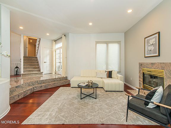 Welcome to Beau Ridge—one of Holmdel's most sought-after gated communities, offering luxury living, resort-style amenities, and unbeatable convenience. This expansive Carrara model, the largest in the community, impresses with a grand two-story foyer and sunlit family room. The open main level is ideal for entertaining, featuring a chef's kitchen with Viking appliances and BOSE surround sound, plus a wraparound deck for seamless indoor-outdoor living. Upstairs, the primary suite boasts vaulted ceilings, a private balcony, and a spa-like bath. The finished walkout basement adds a guest suite, wet bar, and recreation space. Enjoy a two-car garage, pool, clubhouse, gym, courts, and easy access to NYC transit.