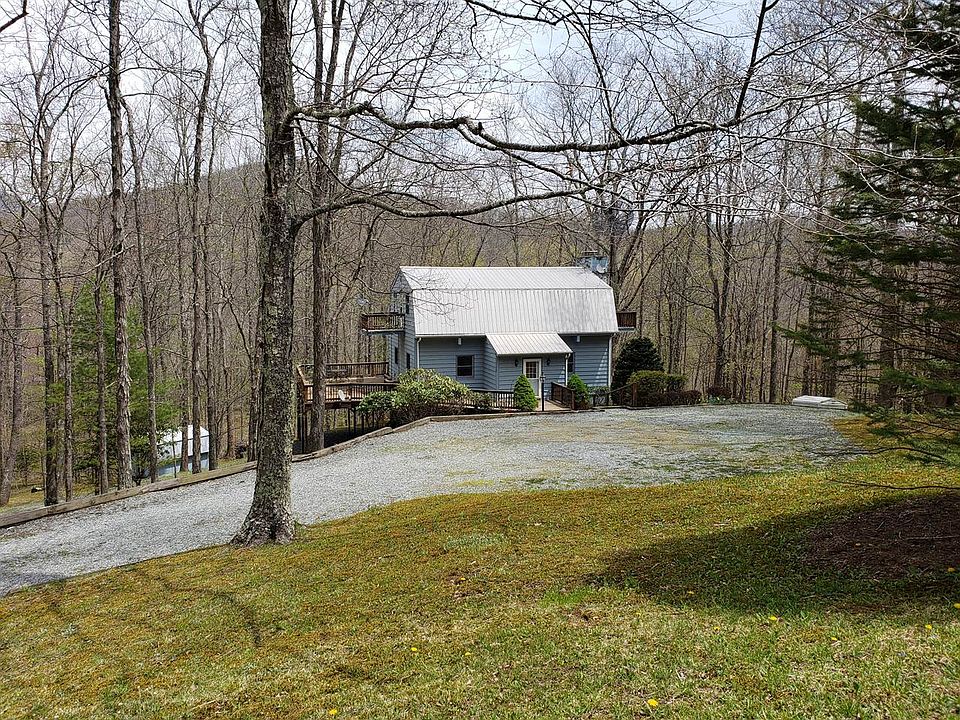 If you love a Barn Farmhouse Style look, then this unique 3 Bedroom 2 1/2 BA home in the meandering, well maintained neighborhood of Green Knob Mountain could be THE ONE! Home is conveniently located just 7 miles out of Boone (from New Market) just off Highway 194N. Inside you'll find the rarely seen ambiance of a Log Cabin Style. The wood paneling in the interior offers all the beauty and warmth of a log home without the log home maintenance. The newer wood-stove can heat most of the entire first floor, though baseboard heat and monitor heat also are available. SPECTRUM High Speed INTERNET is in this home & in this neighborhood. Home offers summer privacy and lovely seasonal views. With easy access off state maintained Hopewell Church Road she is just 7 miles from Boone at New Market groceries, movie theater, shopping and restaurants at Highway 421. Need more land? This darling home is also available on DOUBLE LOTS! Wow! The lot adjacent to this home is flat & also available to purchase (from this same owner) with the home for only an additional $25,000 offering tons of extra privacy, room for play or a garden, etc. See MLS#230037. On two lots the acreage would total 3.9+- ACRES. On both lots Home and Acreage are offered at just @$375,000. Utilize the second lot for a garden or play area, etc. or sell off. A unique meandering circular floorplan on floor 1 & 2 provides ease of flow from room to room. The Primary Bedroom on the 2nd floor is overlarge and is one of three second floor bedrooms, two of which have the cutest unique private balconies. Primary bedroom has efficient radiant ceiling heat and a spacious Jack and Jill bath. Bedroom 3 utilizes two spacious hall closets. Storage space abounds in this home. Discover an Elegant, newer Sunroom at the back side of the home which opens onto an enormous deck. Both of which offer a great space for relaxing or entertaining. Decks are everywhere. If extra income is desired, you will discover APARTMENT POTENTIAL in lower floor. Currently this is living space for the main home, but this is an amazing space with tons of natural window light, that could be adjusted to rent out. The current wet bar on this lower floor has a sink (already has water) and a FULL BATH and laundry. Just add an appliance or two and you could be good to go. Live on and enjoy the upper two floors and have rental income at the same time. Since this owner purchased he has added a HUGE side deck for ambiance, offering winter view enjoyment and space for entertaining. At that same time they enclosed and floored an existing back deck creating an enclosed sunroom. The Gambrel Roof was replaced in 2007. While the water heater was replaced in 2012. Tile floors were added to lower floor space in 1995 making this an easy care room. Wood floors on main level were completely REPLACED in 1995. Larger wood stove that can heat most if not all) of the main floor was installed in 2001. All commodes were replaced 5 years ago. Custom Cabinets in Kitchen were installed in 1995. New Gutter Covers were installed last year. Handy adorable shed conveys and has a new roof. With an update here and there, What's not to love????