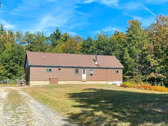 Private 94-Acre Property with Home to be Finished. Built in 2015 this ranch offers an exceptional opportunity for a new owner to create their dream property. The home features cathedral ceilings throughout, with interior walls constructed from OSB panels at standard height. The layout includes a primary bedroom with ensuite bath and walk-in closet, plus a second room designed as a workshop that could be converted into a bedroom if desired. The kitchen and baths are framed with cabinets and fixtures in place but not finished. Ceilings remain open with exposed insulation. Heating is provided by wall-mounted electric units and a wood stove in the living room. Vinyl siding has been partially installed, with some additional materials in the basement (mainly J-trim and soffit). The land is the centerpiece of this offering. The parcel includes a variety of tree species, white pine, hemlock, and red oak. The lot was logged in the 1990s but has since naturally grown back. In the open areas, there are a few existing setups for target practice and a great firepit area. Additional highlights include a large two-door barn/garage with loft and a once-loved garden area ready to be revived. The property also includes nearly 3,000 feet of frontage on a one-lane, privately maintained gravel road (maintenance agreement TBD). Per the site plan/land use map, about one acre is not enrolled in current use. This is an estate sale, and closing will be contingent on probate approval.