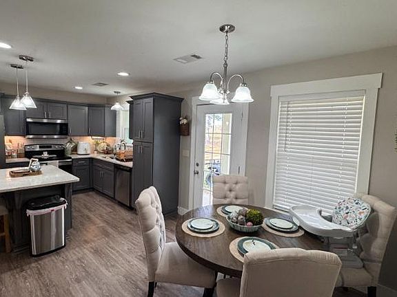 Super clean 3 bed / 2 bath home with double garage and storm house!This beautiful home features LVP flooring throughout, a spacious living room with vaulted ceilings, and a master suite you'll love. The master bathroom offers double vanity sinks, a relaxing soaker tub, a tiled shower, and a separate makeup vanity ? plus large double closets for plenty of storage. Tray ceilings add charm to the master bedroom, and the storm house is conveniently located in the garage. All info subject to verification.