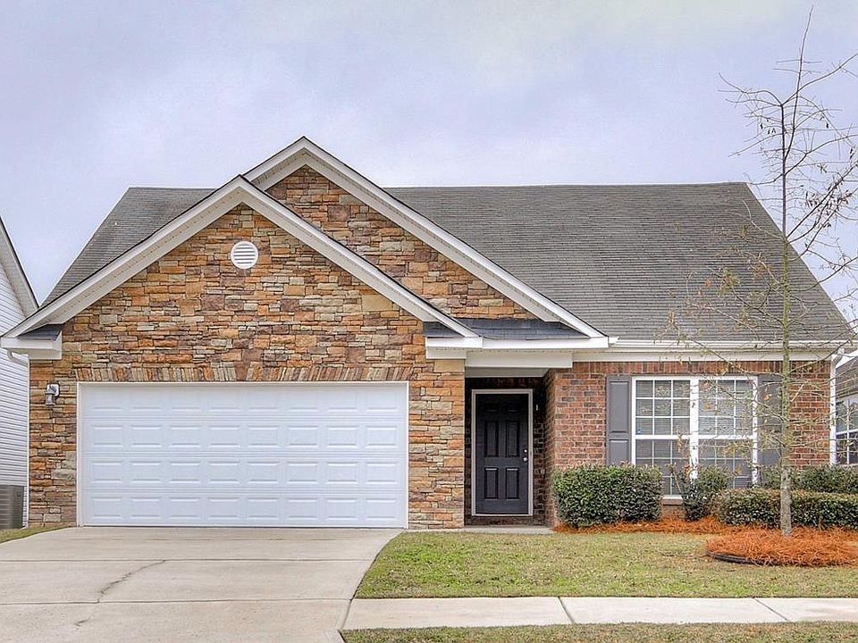 Like new home in top rated school zone! FRESH PAINT THROUGHOUT INTERIOR AND NEW PAINT ON EXTERIOR DOORS AND SHUTTERS. This home is immaculate and ready for a new family to love! Open floor plan. Eat-in kitchen open to great room with sleek black appliances. Great room with cathedral ceiling and electric fireplace. Formal dining room features shadow-box molding and is spacious enough for a large table. Two guest bedrooms and full bath off foyer. Owner suite with trey ceiling and private bath featuring garden tub, double sinks, separate shower and spacious walk in closet. Rear covered porch and large privacy fenced backyard. Stone and brick accents on front of home. Home has been recently pressure washed as well. This one won't last long!