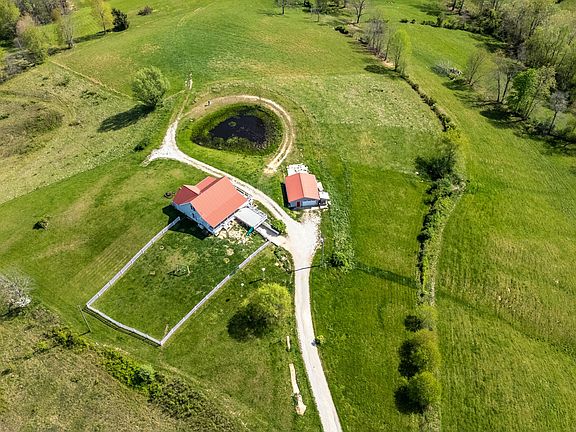 **STILL ACCEPTING BACKUP OFFERS** Make your farmhouse dreams a reality with this home on 26 acres! Just minutes from downtown Sandy Hook, this property offers a versatile layout with the potential for up to five bedrooms. The main floor features hardwood throughout, plenty of windows that let in tons of natural light and beautiful scenic hilltop views. The eat-in kitchen opens to a spacious living room (currently used as a dining room). The primary bedroom includes two closets and direct access to a shared bathroom that has a tub/shower combo with a double vanity. A second bedroom, currently used as an office, completes the main floor. Upstairs, you'll find a large open space currently used as two bedrooms, a full bath, and a hidden bonus room—every kid's dream hideaway! The partially finished basement features a large family room, a separate room (currently used as a gym) with its own bathroom (a potential bedroom), a breezeway exit to the backyard, a laundry area, a spacious storage room, and a partial kitchen equipped with cabinets, a sink, and a dishwasher. Just add a refrigerator and stove to create a full kitchen and transform the space into a separate living area.. The land is partially fenced and offers a mix of pasture, rolling hills, mountains, and wooded areas. At the bottom of the driveway, facing the house, a massive pasture sits to the right, ideal for crops, a barn, or a garage. Relax and take in the fresh air from your spacious, partial wraparound porch and deck, which extends into the backyard. The fully fenced backyard provides a secure space for play and relaxation. A one-car detached garage offers convenient storage for tools and equipment. Just beyond the garage, a large pond adds to the property's charm. Geothermal heating and cooling provide energy efficiency, keeping you comfortable year-round. Additionally, an unfinished hunting cabin/shed sits atop the ridge, providing an excellent vantage point. The lower field is abundant with deer, making this property a true hunter's dream. A second pond is nestled toward the bottom of the property as well. This home offers a great opportunity for those seeking space, privacy, and potential. Whether you're expanding your family, starting a farm, or simply looking for a rural setting, this property has it all!