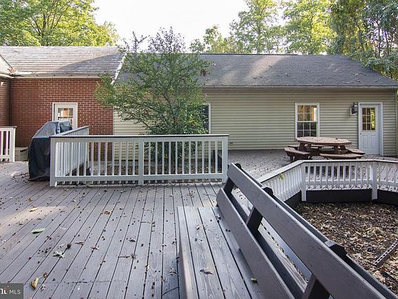 Welcome home to this spacious brick rancher w/expansive front yard. The home includes 5 garage bays, a freshly painted rear deck & large fenced yard. Wood floors throughout, ceramic baths, office/den or possible 3rd BR off the living room, bonus room w/bar & expansive lower level. Convenient to amenities. There's a shared driveway. Bring your creative ideas & make this house your home.