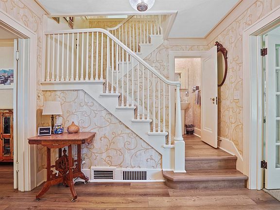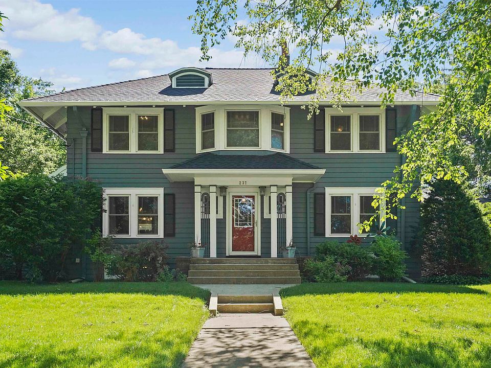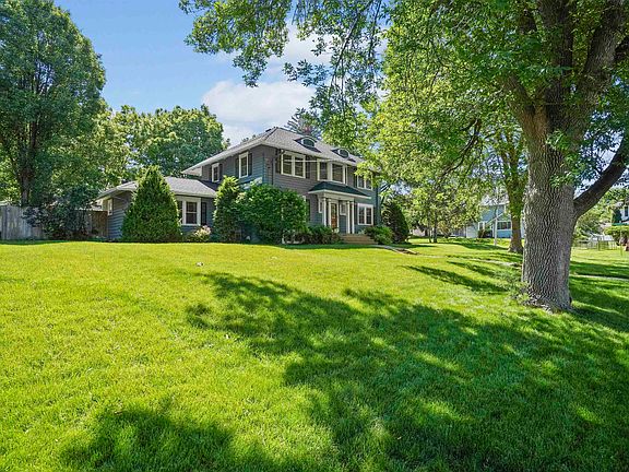 Quality and character abound in this classic home! Stepping inside you'll find upgrades throughout including an updated kitchen, main floor primary en suite, beautiful flooring, fresh paint, trim, exterior paint, and lower-level finish. The gorgeous front entryway opens up to the living room and formal dining room. The formal dining room flows right into the recently updated kitchen. Boasting beautiful cabinetry, hard surface countertops, tile flooring, and a great center island, this kitchen is a chef's dream. The kitchen also offers access to a cozy den that would make for the perfect office space with built-in bookshelves and a desk. The den opens up to the living room which features fresh new carpet, a fireplace that anchors the space, and access to a fantastic sunroom surrounded by windows. On the main floor, you'll also find the primary en-suite. Completing the main floor is a half bathroom. Moving to the upper level, you'll find four spacious bedrooms along with two full bathrooms. The lower level boasts newly finished space with great built-ins making for the perfect hangout space. Outside you'll find a fantastic yard surrounded by mature landscaping with a great patio space and an oversized two-stall detached garage. Don't let this classic home pass you by! Schedule a showing today!