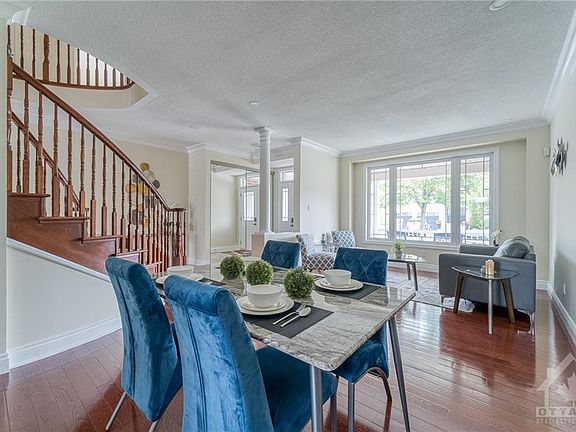 This beautiful 4 bedroom, 3.5 bathroom home located in one of Barrhaven's most desirable neighborhoods. This stunning home features porch at front and Interlock, open concept layout with 9 foot ceilings, tile and hardwood floors, with crown molding on the main floor with pot lights. Gourmet kitchen with large island, serenity quartz countertops, ceramic flooring, premium stainless steel appliances with gas stove, solid cherry cabinets, high efficiency hood fan in kitchen. Curved hardwood staircase. Primary suite with WIC & 4 piece ensuite with granite countertop. 3 additional good sized bedrooms, 3 piece main bath with granite counter top. The finished basement offers oversized rec room with 2 large windows, 3 piece bathroom. Enjoy the evening in backyard on an oversized deck, storage shed, and vinyl fencing. Minutes to trails, parks, shopping, groceries, schools. Make this home yours! Offers presented July 19 @ 3pm,however,Seller reserves right to review/accept pre-emptive offers.