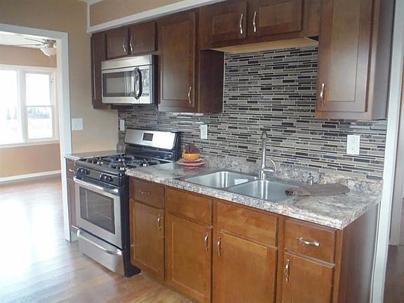 Yes, it is ok to own the nicest house on the block!! Completely remodeled top to bottom. Brand new roof, siding, bath, kitchen with glass backslash, new furnace, a/c. Hot water heater, all updated electrical outlets, lighting, paint and gorgeous hand scraped modeled laminate floors. Yes also included stainless steel fridge and stove. Just move in and enjoy.