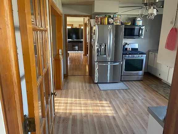 Corner lot with this Ladd 2-bedroom home. Heated sun porch, kitchen with breakfast nook area. Large living room, full basement with another possible bedroom. Shower in basement, 2 car garage, above ground pool makes this home a prime choice.