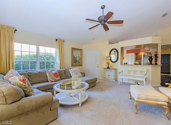 Warm and welcoming villa offers 3 spacious bedrooms, two baths, and 2 car garage. Loaded with over $25,000 in upgrades, the home features an eat-in granite kitchen with stainless appliances. Elegant finishings are found throughout with designer lighting, plantation shutters, new carpet, and custom window treatments. The master and guest bathrooms have been tastefully upgraded. Relax on your lanai while taking in the Florida sunshine surrounded by lush landscaping and the beautiful garden paths that line the community leading to the pool just out the back door. The Vineyards has long been known as one of Naples finest and most beautiful gated communities. The Vineyards Country Club boasts two championship golf courses, 12 tennis courts, a fitness center, 32 acre Community Park, miles of walking trails with mature landscaping, and private dining, and an impressive 70,000 sq. ft. club house. Vineyards offers many options for levels of membership. However, it is not a requirement for living in this upscale community. Don't miss the perfect home to fit any lifestyle and a central location close to everything Naples has to offer!