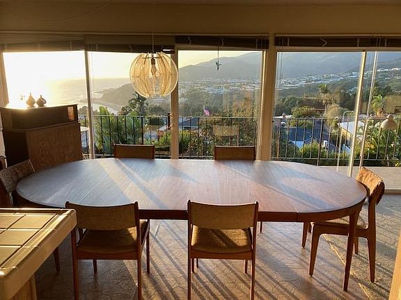 Relax with the whole family at this peaceful place to stay featuring sweeping whitewater ocean and Santa Monica Mountain views from the second story deck and large back yard. Enjoy this 1960's Palisades house with mid-century modern fixtures and hardwood furniture. Decorated with ceramics, paintings, and photos from the longtime resident artist. It's a short walk to the Pacific Ocean, adjacent to the Getty Villa Museum, and a 10 minute drive to Palisades Village restaurants, shops, Santa Monica Mountains Hiking trails and Malibu. Freestanding single-family home with 3 bedrooms, 2 bathrooms, spacious living/dining/kitchen area. Approximately 1600 sq ft + spacious yard. 15 min walk to Castlerock Beach. Take in the outstanding location with sunset views of Topanga Point, Pacific Coast Highway and Point Dume. Short term rental 3 months. House is furnished. Security Deposit $10,000, includes last months rent Utilities included: water, gas, electricity, and Wi-Fi Parking - 2 driveway places and ample free street parking Please no pets Please no parties Please no smoking/vaping inside and outside