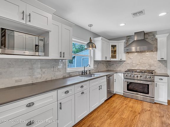 This is a Coming Soon Listing and cannot be shown until 5/21/22 Turn key 3 bedroom, 3.5 bath Custom Colonial in Lincroft. Chef's kitchen with commercial grade stove/oven, Viking hood and honed quartz countertops white shaker cabinets and gleaming hardwood floors.. Open Concept living space flows into the dining room and great room with a gas fireplace. Upstairs large primary bedroom , attached sitting room, spacious walk in closet and ensuite bathroom with oversized shower and separate soaking tub. 2 large additional bedrooms with shared private bathroom and washer and dryer in hallway. Full attic with 7 foot ceilings. Finished basement with powder room. Fenced in backyard, concrete patio with outdoor kitchen/bar, gazebo, above ground pool and solar panels. Close proximity to park and ride shopping, dining and Jersey Shore beaches.