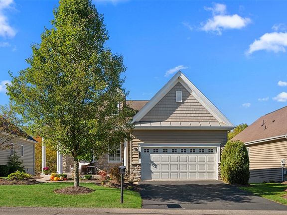 Exceptional & Pristine stand-alone condo in highly sought-after resort style community of Liberty Hills! An inviting wrap around porch leads to the welcoming entry. Luxury & attention to detail you expect with updated hardwood floors that span the main level, crown molding, wainscotting, 9' & vaulted ceilings. A French door separates the entry from the office & features windows w/plantation shutters. A showstopper wall of windows in the family room displays gorgeous views of the maintenance free deck & level yard backing to woods. The chef in your home will adore the eat-in kitchen w/upscale stainless appliances, granite countertops & backsplash. Sunroom features electric blinds so you can enjoy the room on bright sunny days. A lush master suite boasts a trayed ceiling,2 closets-one a walk-in closet, spa-like bath w/Roman walk-in tiled shower. Finished lower level gameroom w/walkout to a patio,3rd bedroom,3rd full bath, 2 HUGE storage rooms. Active HOA w/pickleball courts, pool & more!
