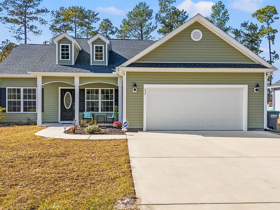 Welcome to your dream home — a beautifully maintained 3-bedroom, 2-bath single-story residence built in 2022, offering the perfect blend of quiet country living and modern convenience. Nestled in a peaceful small-town setting with no HOA, this home provides space, comfort, and style just minutes from local schools and a short drive to the beach. Step inside to find an inviting open floor plan featuring waterproof vinyl wood-look flooring throughout the entire living area. The spacious master suite offers vaulted ceilings, a ceiling fan, and a walk-in closet, while the ensuite bath provides a relaxing retreat after a long day. Enjoy morning coffee on your charming front porch or unwind in the evening on the rear screened-in porch overlooking your fenced-in backyard—perfect for entertaining, pets, or peaceful outdoor living. Additional highlights include: Irrigation system for easy lawn maintenance, Gutters and full landscaping already in place, Attached two-car garage with pull-down attic stairs for extra storage, and Close to schools, shopping, and dining. If you’ve been searching for a modern home with all the comforts of country charm and the convenience of coastal living, this one has it all. Schedule your showing today — this gem won’t last long!