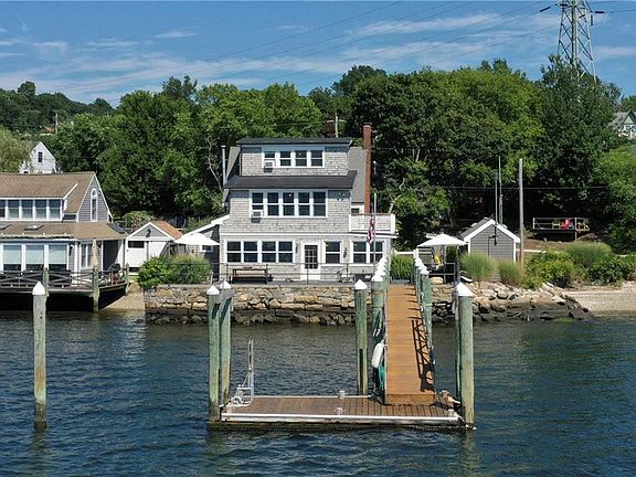 The Dockside Cottage feels like a vacation every day of the year. This property is a waterfront oasis with amazing westerly views, poetic sunsets, a 74-foot dock, and two deep water moorings. Boating, kayaking, paddle boarding, fishing, swimming and simply watching the boats slowly pass by in the no-wake-zone on the Sakonnet River is magical. While the summer here is exceptional, and the outdoor space has a small grass yard, a seating area, outdoor grilling/dining area, and an outdoor shower, The Dockside was built and renovated for year-round living. The wood burning fireplace makes for an extremely cozy winter's evening. With three floors of living space, you will notice thoughtful design details and smart storage at every turn. Three bedrooms with space for a fourth, 2.5 baths, an office, a culinarian's kitchen, a sunroom, multiple nooks and gathering spaces...you will never want to leave. However, if you do decide to leave, The Dockside has a very strong short-term rental history. This is a unique, stylish and turnkey home in an authentic seaside farming community, minutes from the yacht club, fine restaurants, picturesque beaches, golf, farmstands, Tiverton Four Corners, highway access, Newport, Providence...where else would you want to live?