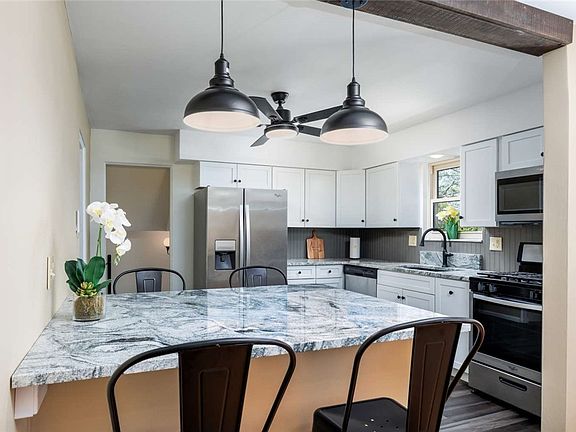 Mt Lebanon Home for Sale- Updated - Move In Ready - with NEW granite /marble countertops, new white cabinets, stainless appliances, kitchen island and an open floor design, hardwood floors in LR, DR and 3 bedrooms. A/C, Ceiling fans w/lights in the kitchen & 3 bedrooms. Optional lower-level 4th bedroom, with newly installed carpet, can also be used as an office, game room or in-law suite with separate entrance & full bath. This home offers a beautiful log burning (or gas possible) fire place, a private large, scenic upper deck, a ground-level patio and a large 2 car garage with additional work space. The 3 gorgeous bathrooms have all been updated with granite/ marble tops. Located in Mt Lebanon school district (Foster Elementary) on a low traffic street yet close to Mt Lebanon Shops.