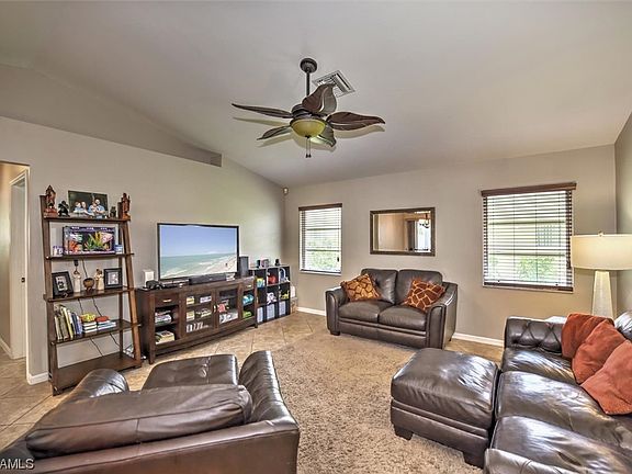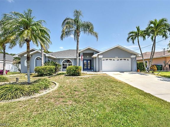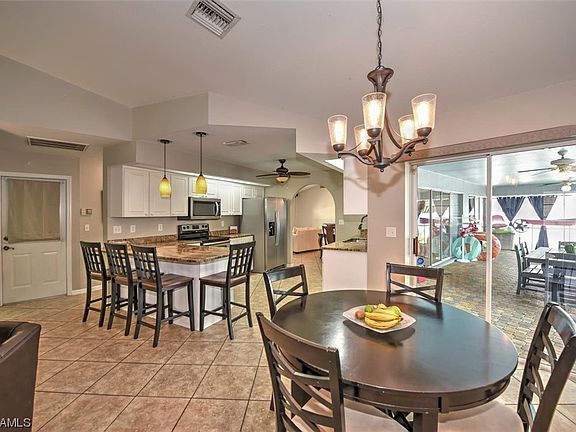 This is a 3 bedroom, split bedroom floorplan, 2 baths, pool home, 2 car garage, large lanai, separate living room/family room and a fenced in yard. Very desirable location in SW Cape Coral. Large living room/dining room, kitchen has granite counter tops, newer appliances, dining area, bar seating area, family room is just off the kitchen making for a great family space, there are 3 pocket sliding doors out to the lanai. Lanai is approx. 16'x34' with a large "under truss" area for entertaining and/or family fun time. There are pavers and the pool has a table to sit and relax. The guest bedrooms include walk in closets and the guest bath is also a pool bath. Primary bedroom is a nice size with a walk in closet. Primary bath offers a separate tub and separate shower and 2 sinks. Inside laundry room with a pantry and laundry tub. The Brand New Roof was completed in 2023! We are accepting bona fid back up offers.